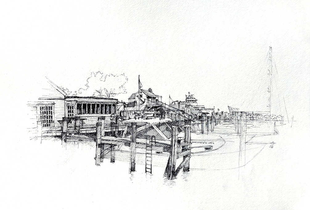 Pen drawing. All pieces are hand-drawn by Weston Baker.
